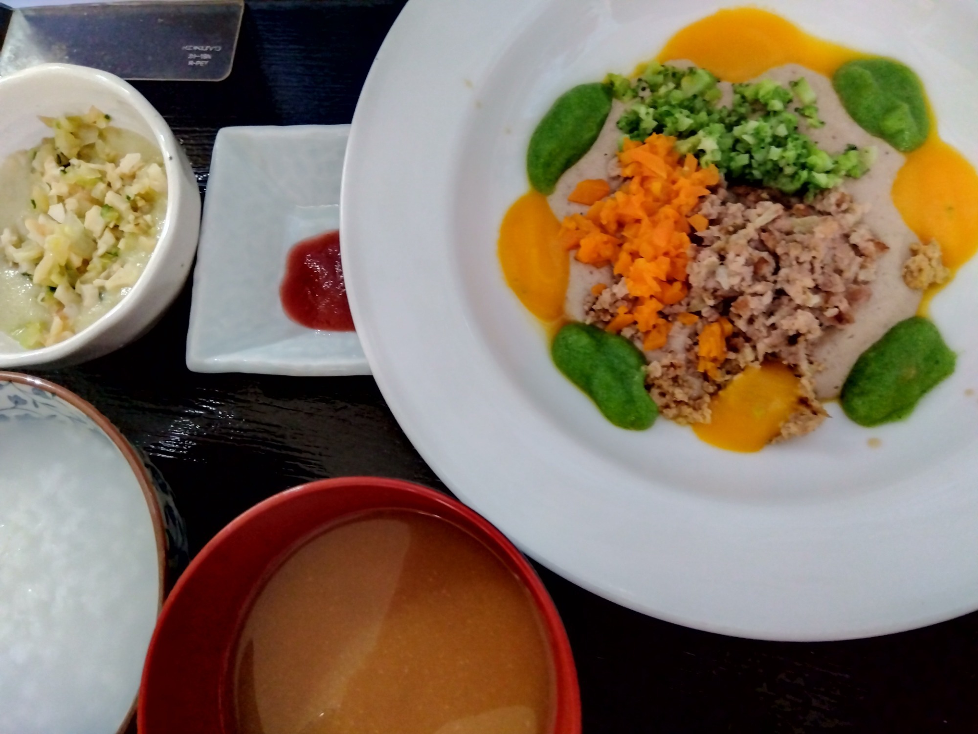 今日のお昼ご飯は【おろしハンバーグ・キャベツとちくわの胡麻和え】