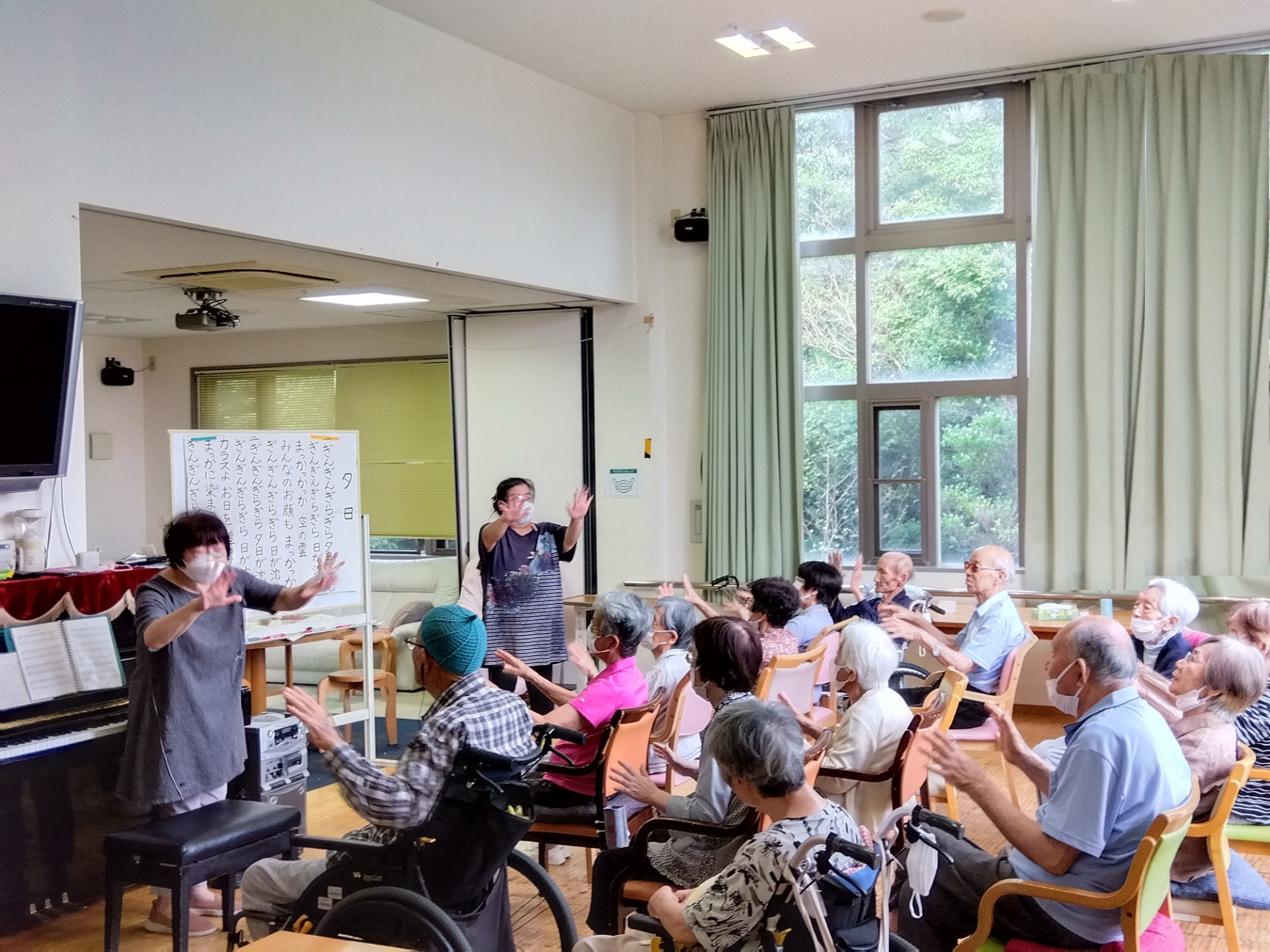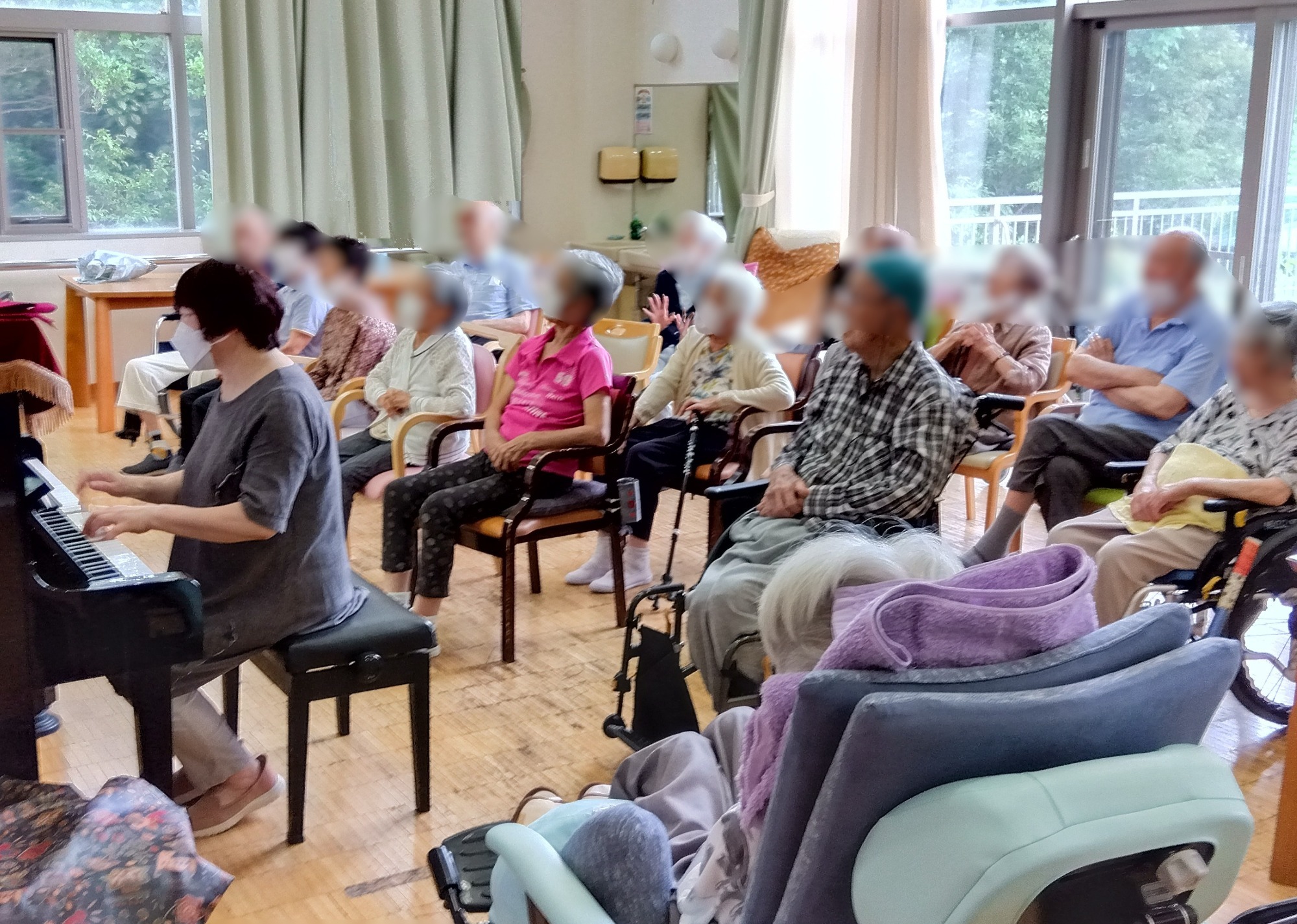 ショートステイの皆様はハーモニカ演奏の音楽療法♪