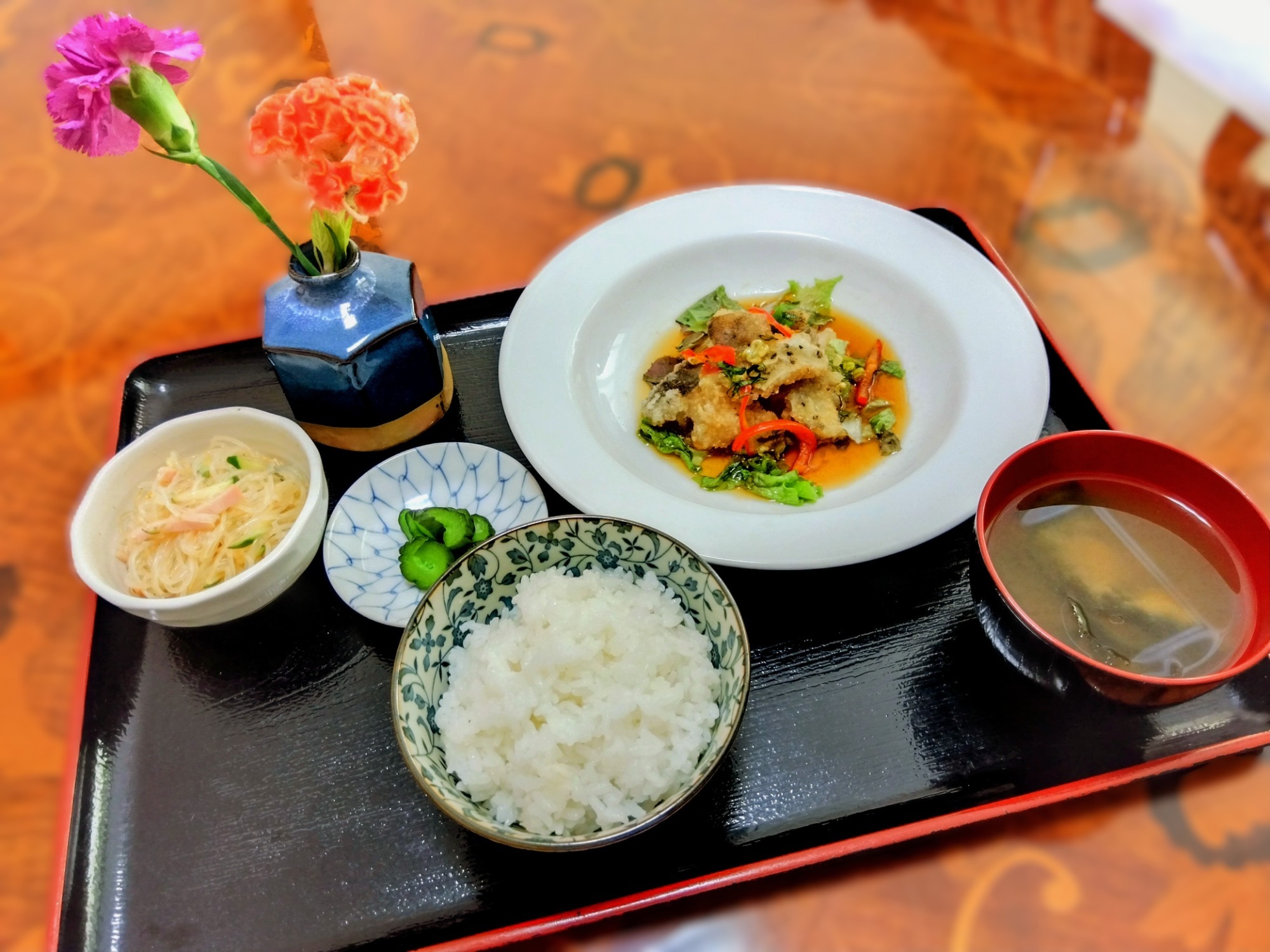 【筍ご飯・赤魚の油淋鶏風・ひじきと大豆の五目煮】