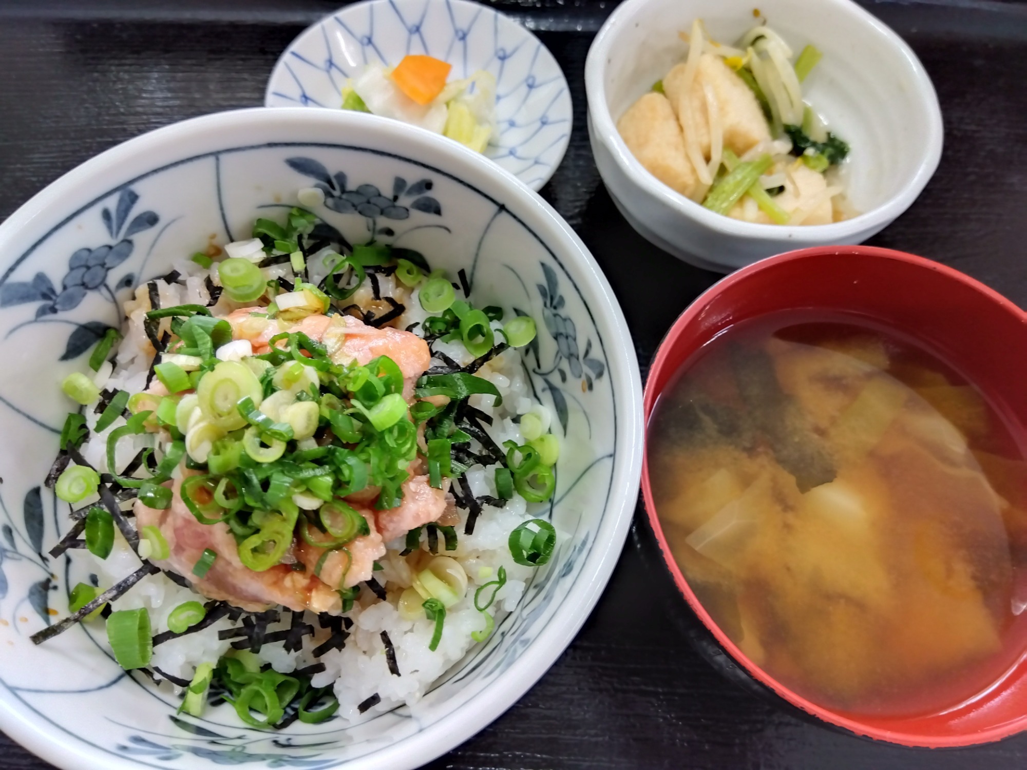 【ねぎとろ丼・小松菜と厚揚げ煮】