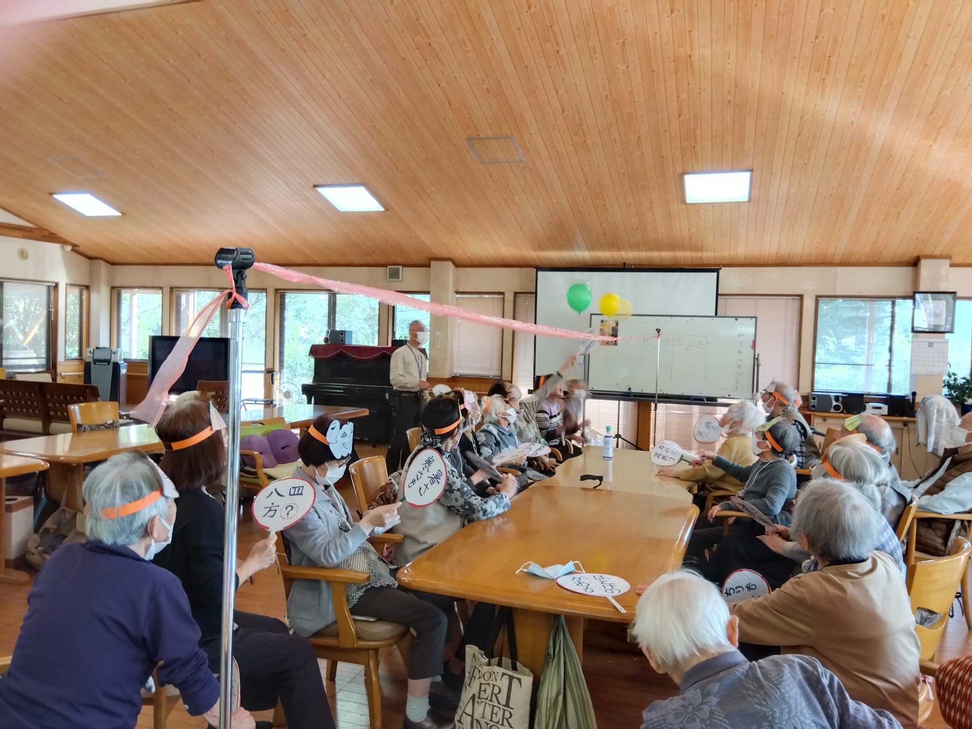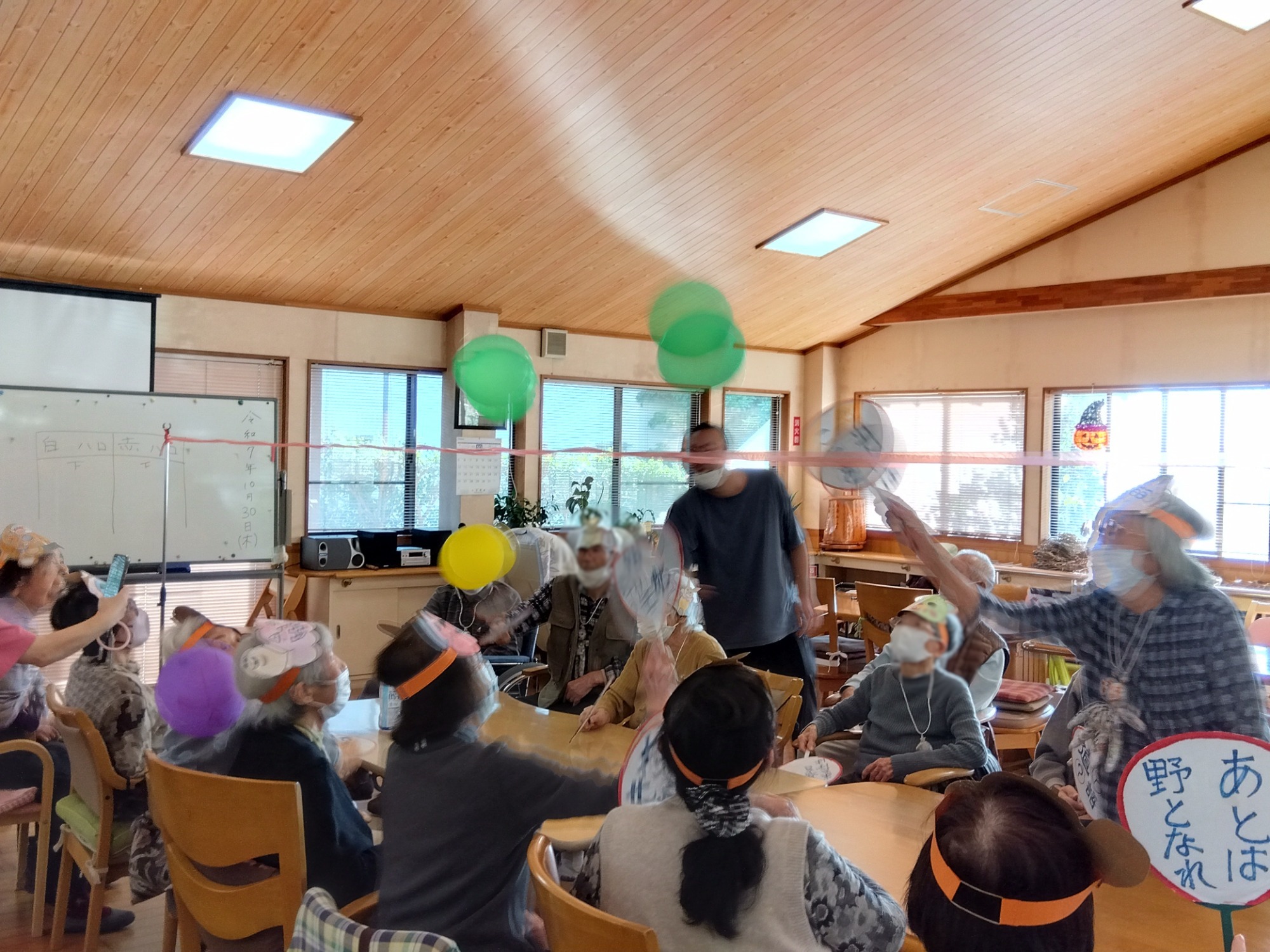ハロウィンの日、デイサービスではゲストの皆さんと一緒にゲームを楽しみました。