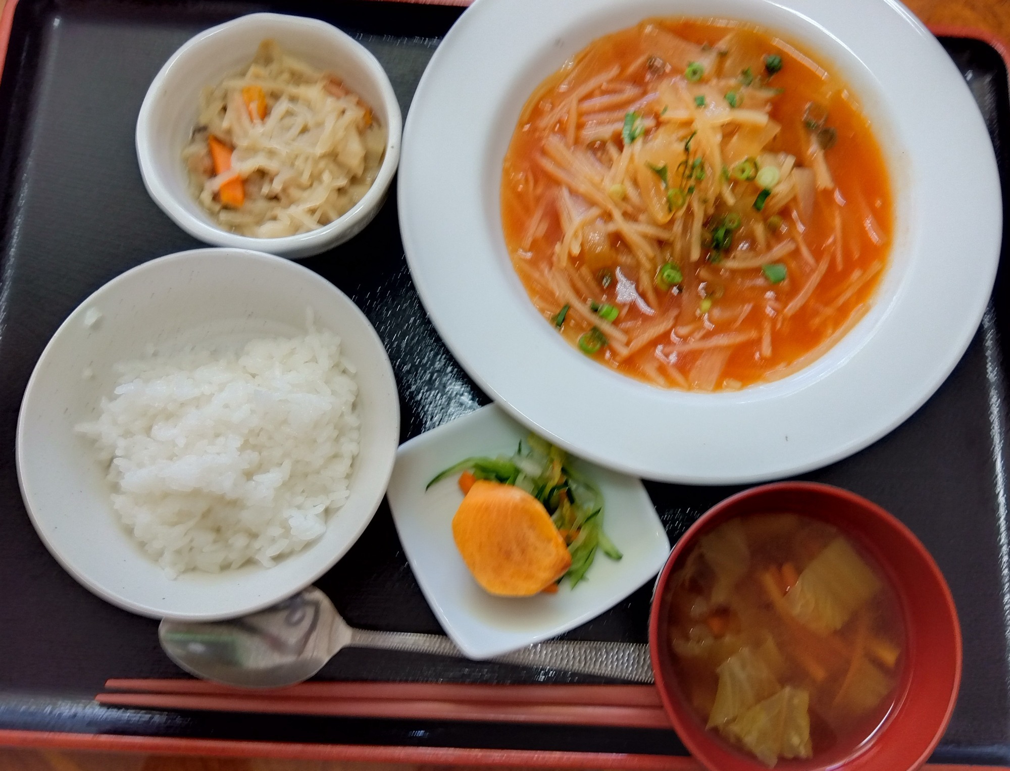 【肉うどん・青菜の和え物・おにぎり・香の物 】