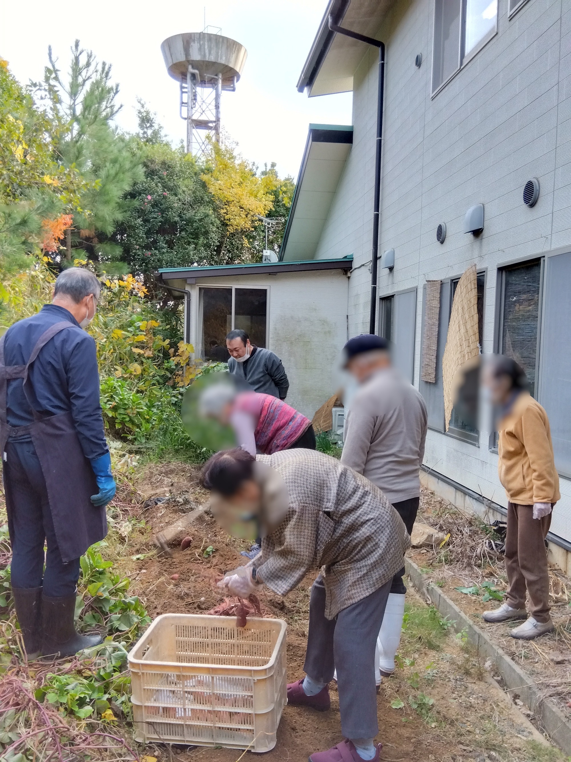 デイサービスのご利用の皆様と一緒に大切に育ててきた サツマイモをついが収穫の時期を迎えました。