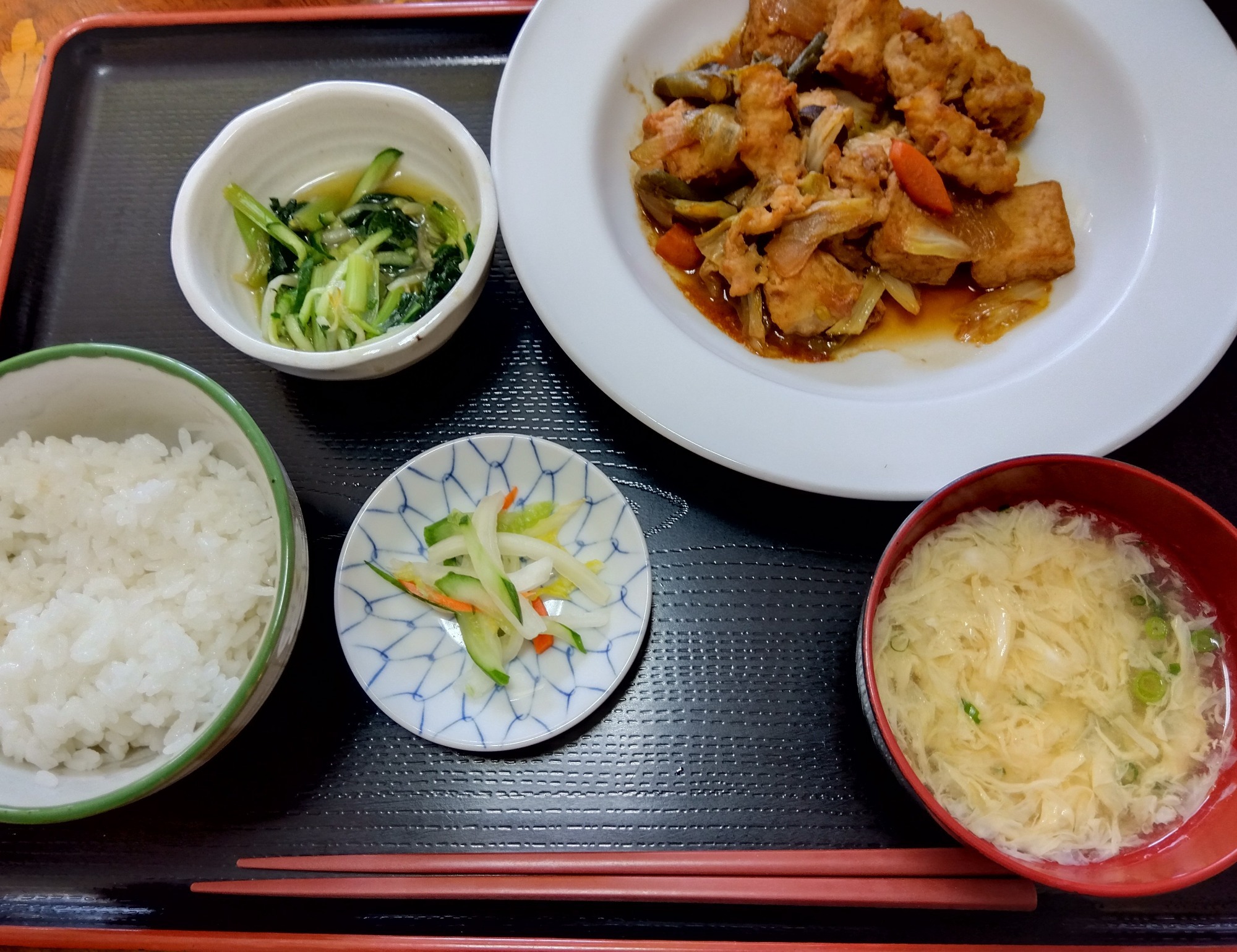 【豚肉の厚揚げみそ炒め・青菜のナムル】