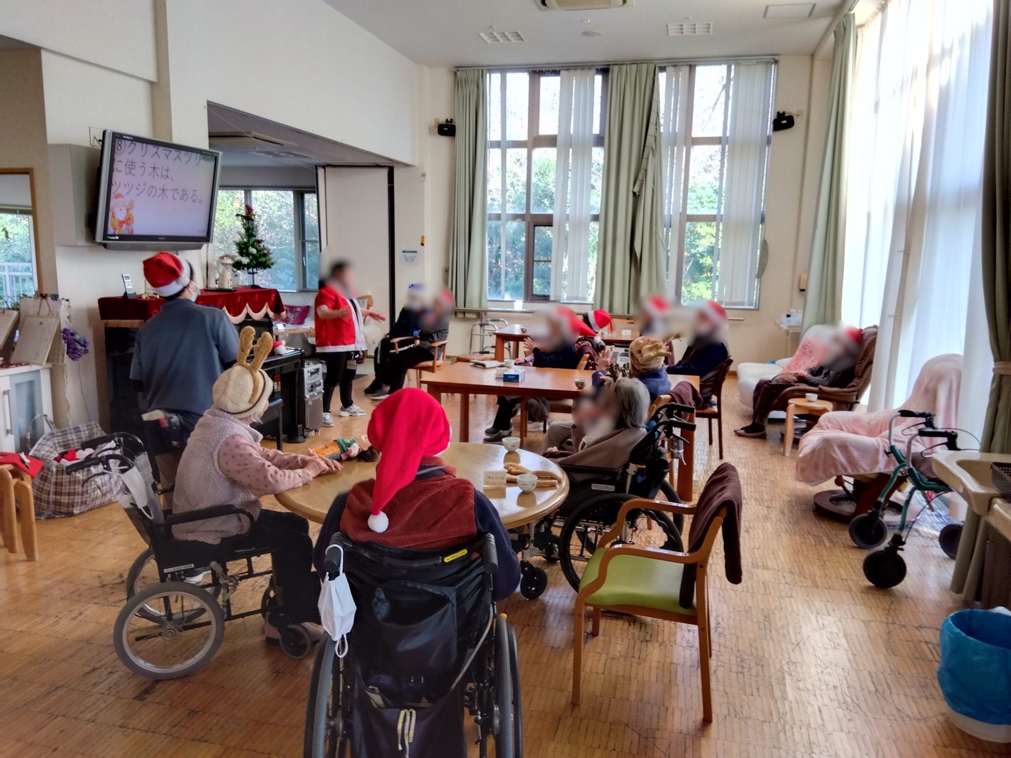 ショートステイでクリスマス会を開催、利用者の皆様とゲームを行い、楽しいひとときを過ごしました。